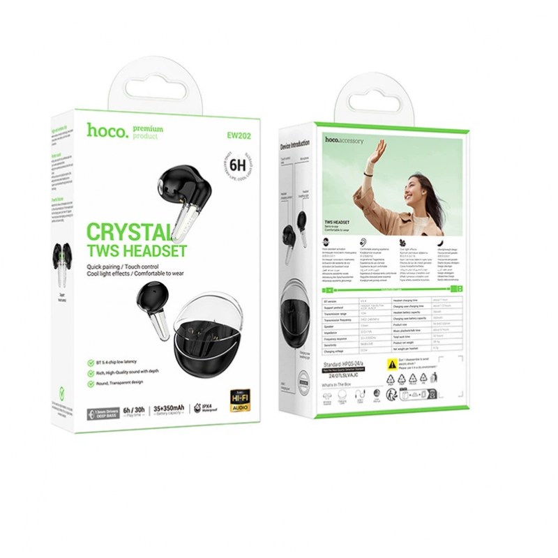 Идеальная фиксация во время активных занятий: Беспроводные наушники HOCO EW202 надежно сидят в ушах даже при интенсивных физических нагрузках, таких как бег, прыжки или спортивные игры. Они идеально подходят для спорта, фитнеса и активного отдыха, обеспечивая стабильность и комфорт во время движения; Быстрое подключение через Bluetooth 5.4: Благодаря технологии Bluetooth 5.4 эти беспроводные наушники обеспечивают стабильное и быстрое соединение на расстоянии до 10 метров. Наслаждайтесь бесперебойной работой с устройствами без задержек и помех. Беспроводное соединение позволяет забыть провода и сосредоточиться на важном; Интуитивное сенсорное управление Сенсорные панели на наушниках HOCO EW202 позволяют легко отвечать на звонки, переключать музыку и регулировать громкость всего одним касанием, обеспечивая максимальный комфорт и удобство в использовании. Удобное управление без необходимости искать кнопки; Стильный и универсальный дизайн: Современный внешний вид наушников HOCO EW202 станет стильным аксессуаром для любой ситуации. Их элегантный дизайн подойдет как для офиса, так и спортивных активностей; Высокое качество звука: Наслаждайтесь чистым, насыщенным звуком с четкими высокими частотами и низкими глубокими. Эти наушники идеально подходят для прослушивания музыки, подкастов или звонков без помех, даря яркие звуковые впечатления в любых условиях; Совместимость с Android и iPhone: Наушники HOCO EW202 легко подключаются ко всем устройствам на базе Android и iPhone. Они универсальны и поддерживают широкий спектр смартфонов, планшетов и других Bluetooth-устройств; Голосовой ассистент Siri: Благодаря легкому доступу к Siri, вы можете управлять наушниками с помощью голосовых команд, что придает еще большее удобство и комфорт в повседневном использовании; Наушники HOCO EW202 поставляются с компактным зарядным кейсом, который защищает их от повреждений и позволяет заряжать наушники в любое время, гарантируя их готовность к использованию; LED-индикатор работы: Встроенный LED-индикатор на кейсе позволяет отслеживать статус зарядки и работы наушников, обеспечивая точную информацию об их состоянии.