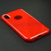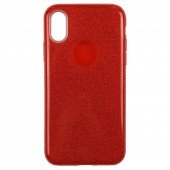 Чехол Silicone 3in1 Блёстки для iPhone X Red