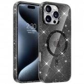 Чехол Epik TPU Eclipse Sparkle (MagFit) для iPhone 15 (6.1") — стильный чёрный чехол с блёстками и п..