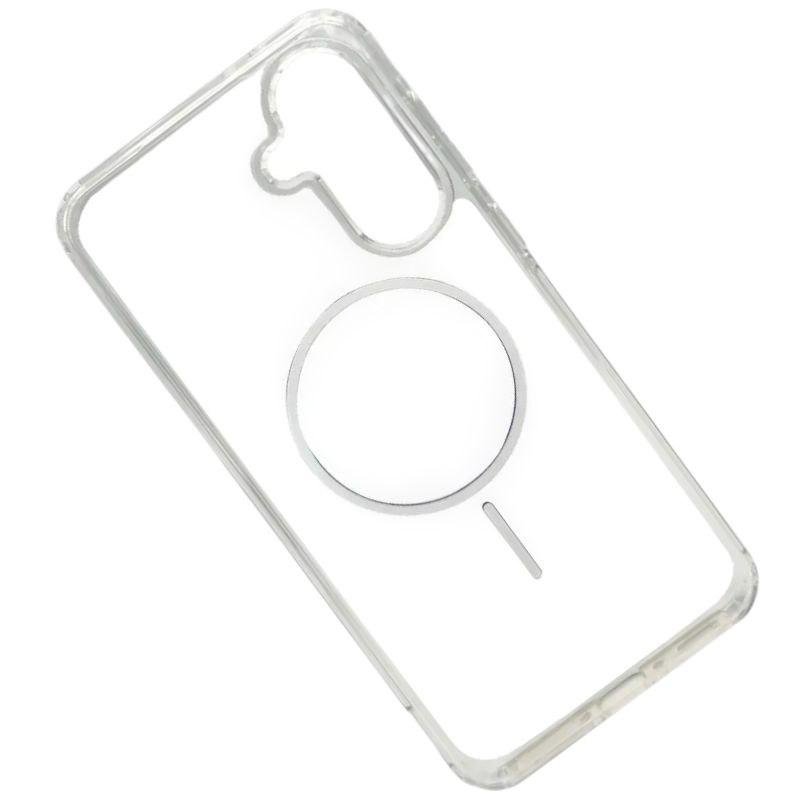 Cosmic Acrylic Thin Magnetic – это премиальная панель-накладка, которая идеально сочетает в себе бескомпромиссную защиту и элегантный дизайн вашего смартфона. Благодаря хрустальной прозрачности акриловой спинки аксессуар не скрывает оригинальный цвет и логотип Samsung Galaxy, добавляя при этом современный функционал MagSafe. Основные преимущества: Поддержка MagSafe и Qi-зарядки: Встроенное магнитное кольцо обеспечивает надежную фиксацию с любыми аксессуарами: беспроводными зарядками, магнитными держателями в авто и кошельками. Гибридная конструкция: Сочетание жесткой акриловой задней панели и гибких бортиков из термополиуретана (TPU) создает надежный барьер против ударов, царапин и падений. Ультратонкий профиль: Чехол минимально увеличивает габариты устройства, сохраняя эргономику и удобство использования одной рукой. Защита камеры и экрана: Поднятые края (безель) вокруг дисплея и блока камер предотвращают появление царапин, когда телефон находится на плоской поверхности. Долговечность: Высококачественные материалы устойчивы к ультрафиолету, что предотвращает быстрое пожелтение прозрачных частей.