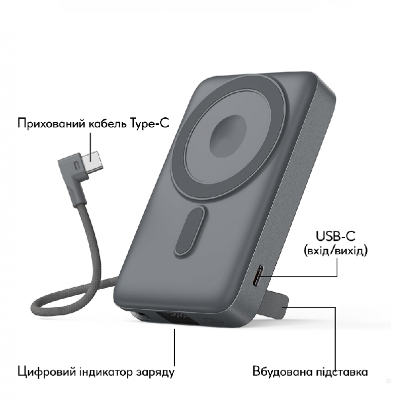 Дополнительная батарея Relict Pulse 2in1 10000mAh MagSafe 22.5W Grey