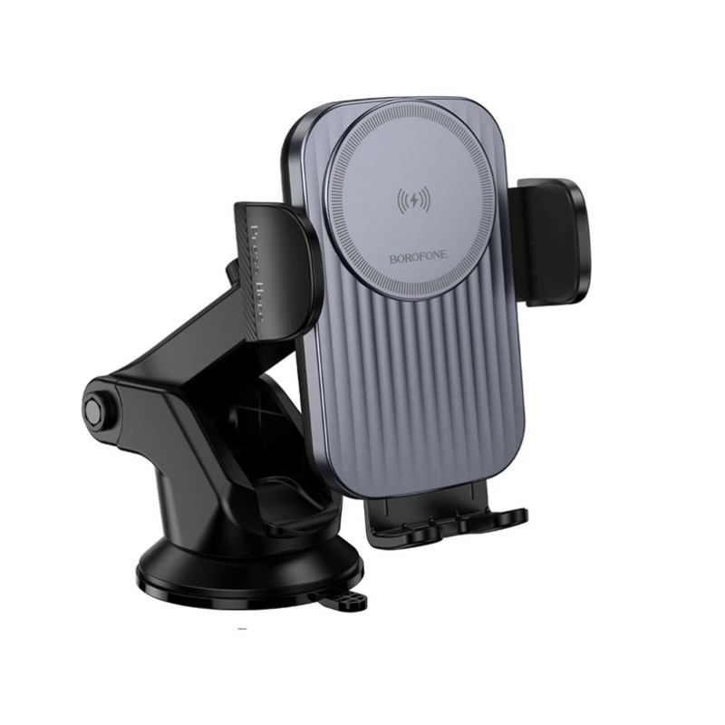 Автодержатель Borofone BH222 – это функциональный аксессуар, который значительно упростит использование смартфона водителем при управлении автомобилем. Его практичная конструкция, универсальность и модуль беспроводной зарядки помогут легко зафиксировать смартфон в удобном положении и не беспокоится об уровне его заряда (при поддержке технологии Qi). Особенности и преимущества автодержателя Borofone BH222: Оригинальный дизайн со стильной окраской, практичными деталями и волнистой текстурой центральной панели. • Компактные размеры: 114×95×106мм – не отвлекает внимание и не мешает, устанавливаясь на торпедо. • Качественные электронные компоненты и надежная конструкция из устойчивой к повышенной нагрузке ABS-пластика. • Универсальный раздвижной механизм, надежно фиксирующий смартфон фиксаторами из его боковых граней. • Широкий диапазон ширины захвата: 58-83мм, - обеспечивает совместимость с современными смартфонами диагональю 4.5-7”. • Механическая кнопка для удобного высвобождения устройства только одной рукой. 360° вокруг его оси • Телескопическая штанга с фиксатором и шарниром у основания для настройки приближения и кута наклона. 2A и 9V при 1.67A). • Основание с вакуумной присоской для установки на плоскость торпедо автомобиля.