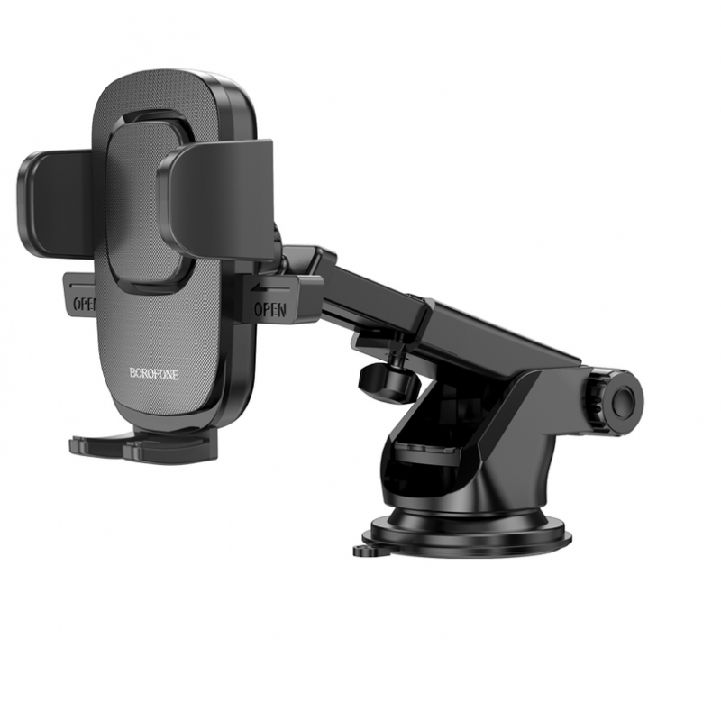Холдер Borofone BH60 Dainty Black Автомобильный держатель BOROFONE BH60 Dainty отличается высоким удобством использования, ведь штатив легко трансформируется и имеет несколько положений. Фиксатор, соединяющий две части штатива, позволяет двигать держателем в пределах 90 градусов. Верхняя часть штатива легко выдвигается благодаря еще одному фиксатору. Это позволяет подобрать удобное положение и длину владельца, чтобы пользователь не отвлекался лишний раз от основного процесса – вождение авто. Держатель крепится к панели или лобовому стеклу автомобиля с помощью вакуумной присоски. Она без проблем выдерживает вес держателя с габаритным смартфоном даже при езде по неровной дороге и во время резких маневров. Ваш смартфон всегда будет под рукой и надежно закреплен.