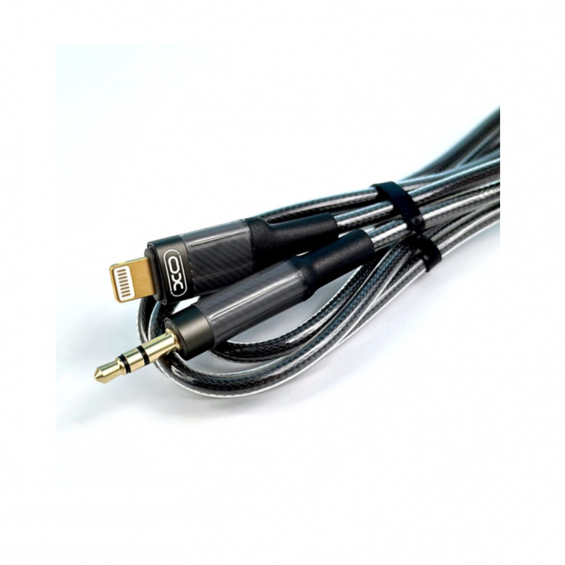 Кабель AUX XO NBR279A Lightning to 3.5" Black 1m AUX кабель XO NB-R279A Lightning – 3.5 мм, длина 1 метр – удобное решение для подключения iPhone к колонкам, автомобильной магнитоле или любым устройствам с AUX-входом. Кабель имеет крепкую тканевую оплетку, которая защищает его от перегибов и повреждений. Обеспечивает чистую передачу стерео-звука без шумов и искажений. Достоинства: разъемы: Lightning – 3.5 мм (AUX); длина кабеля: 1 м – удобно для авто и дома; прочная тканевая оплетка; поддержка HD Audio для качественного звучания; стильный современный дизайн. Назначение: для подключения iPhone к акустическим системам, автомагнитолам, колонкам и наушникам с AUX-разъемом.