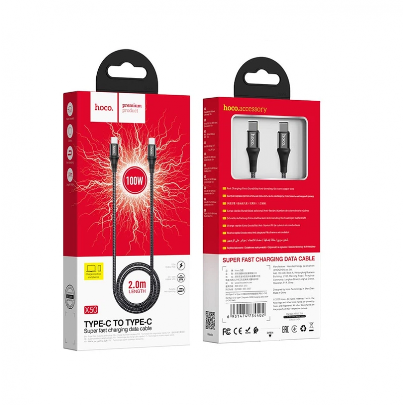 Кабель Hoco X50 Excellent Type-C to Type-C Black 1m