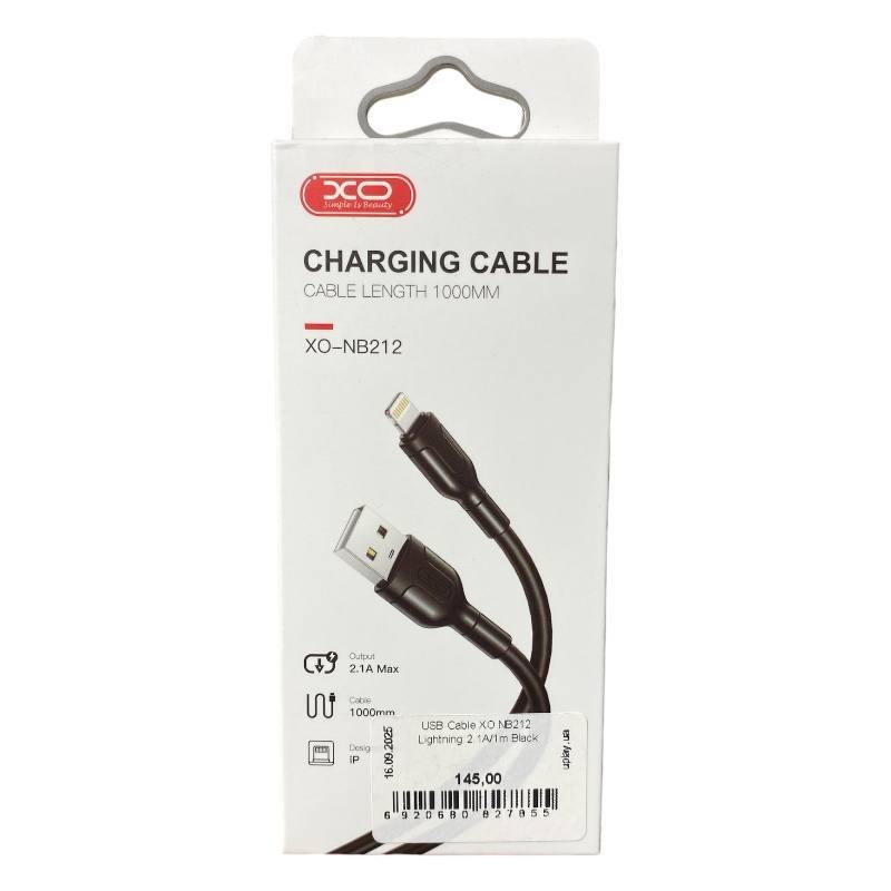 Кабель XO NB212 Lightning 2.1A/1m Black
