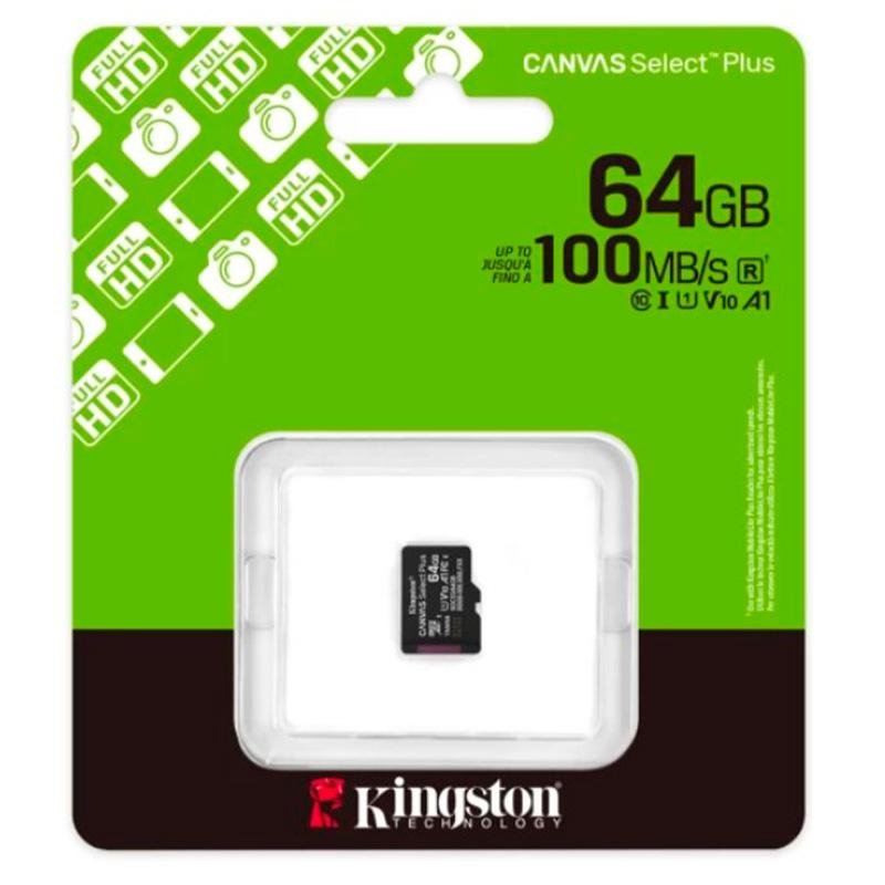 Карта памяти Kingston microSDHC 64Gb Canvas Select Plus class10 A1(R-100Mb/s)