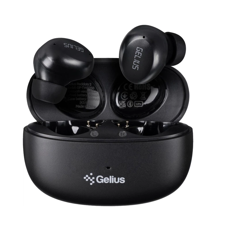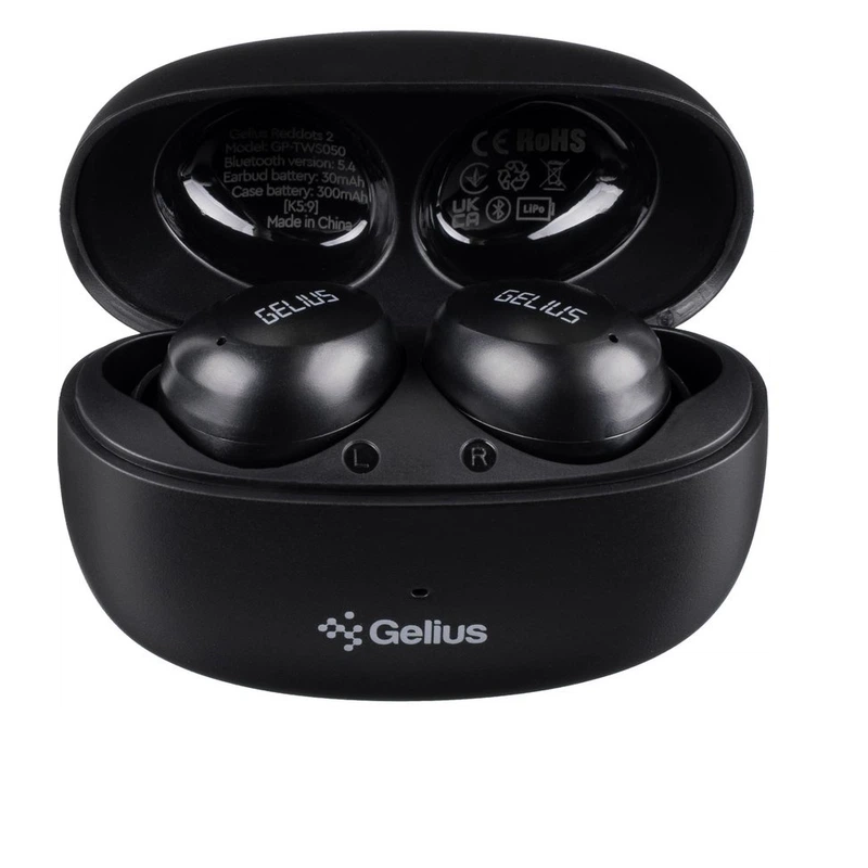 Чистый и мощный звук Беспроводные наушники Gelius Reddots 2 оснащены 10 мм динамическими драйверами, обеспечивающими насыщенное и сбалансированное звучание. Они воспроизводят чистые высокие ноты, глубокие басы и детализированные средние частоты, создавая комфортный звук как музыке, так и разговорам. Стабильное соединение с Bluetooth 5.4 Благодаря современному стандарту Bluetooth 5.4, вы получаете мгновенное подключение без задержек и прерываний. Поддержка популярных профилей HFP, HSP, AVRCP, A2DP и аудиокодека SBC делает использование наушников максимально удобным для разных устройств. Автономность на целый день Наушники работают до 5 часов непрерывного воспроизведения, а зарядный кейс с аккумулятором на 300 мАч позволяет продлить это время в несколько раз. Это означает, что вы остаетесь на связи в течение всего дня – дома, в пути или во время тренировок. Вакуумная конструкция для комфорта Reddots 2 – вакуумные TWS-наушники, которые плотно и удобно располагаются в ухе. Они надежно держатся даже во время активных движений, тренировок или прогулок, одновременно изолируя от внешних шумов. Удобная зарядка Современный интерфейс USB Type-C делает процесс зарядки быстрым и удобным. Вы можете легко пополнить запас энергии даже в пути, используя любой совместимый кабель.