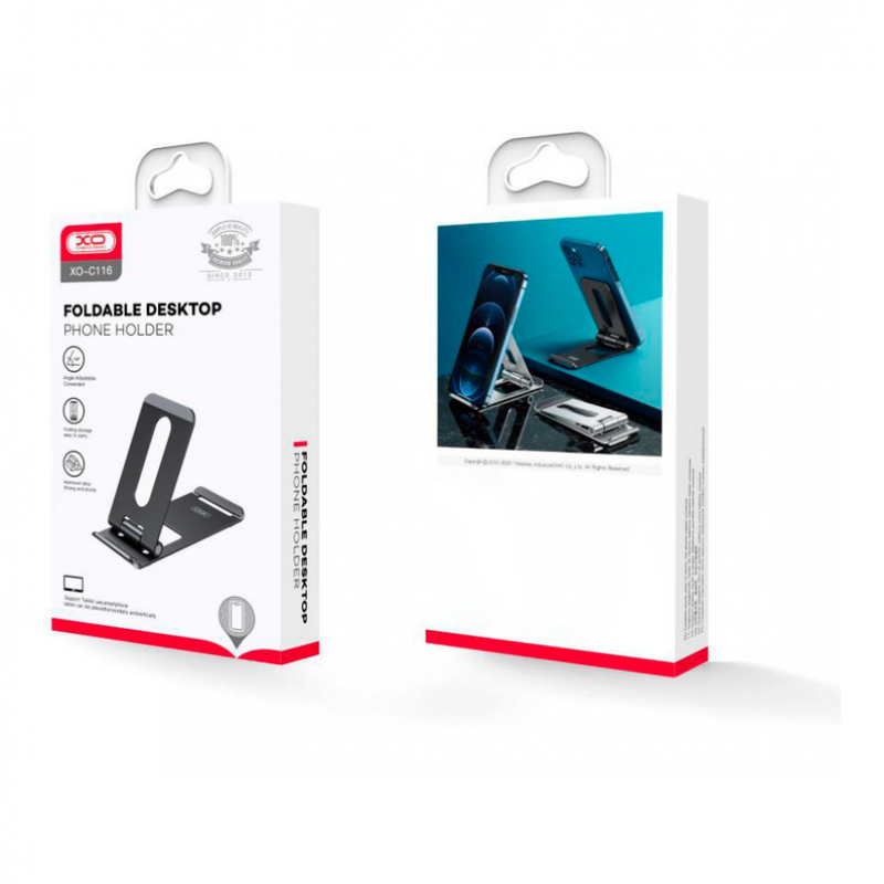 Настольный держатель XO C116 Black Настольная подставка для планшета и телефона XO C116 является отличным и полезным аксессуаром для вашего планшета, смартфона или электронной книги. Эту подставку можно успешно использовать с любым гаджетом. Подставка позволяет разместить ваш планшет под любым удобным углом наклона. Фиксация угла подъема осуществляется с помощью поворотного механизма подставки, вращающегося на 180 градусов. Основные особенности: Простая и легкая установка. Изготовлена из алюминиевого сплава с прорезиненным антискользящим покрытием. Имеет компактные размеры, позволяющие легко поместить его в сумочке, портфеле или даже в рюкзаке.