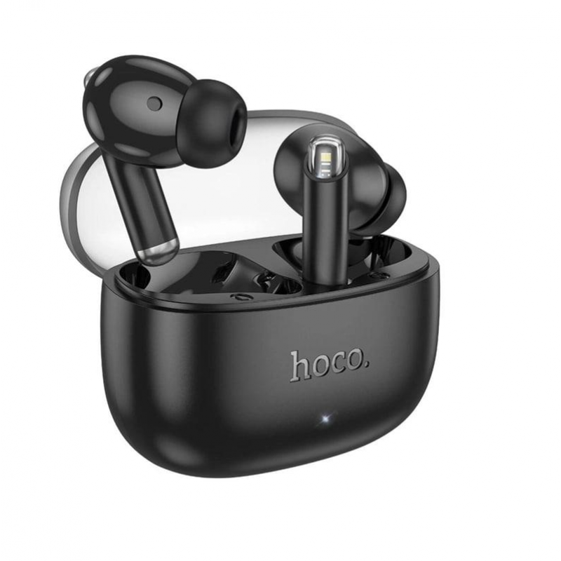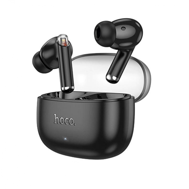 Наушники Bluetooth Headset Hoco EQ12 Rima Black Наушники HOCO EQ12 Rima true wireless BT headset – высокотехнологичные вакуумные наушники, выделяющиеся функциональностью, небольшим весом и способностью передавать детализированный звук в Hi-Fi качестве, сохраняя оригинальное звучание музыкальных композиций. Корпуса ушных элементов выполнены с приятными на ощупь матовыми деталями, имеют эргономичную форму, которая в сочетании с силиконовыми амбушюрами обеспечивает комфортную посадку в ушные каналы. Модель поддерживает вызов голосового ассистента. Наушники снабжены аккумуляторами емкостью по 40mAh, удобным сенсорным управлением, современным модулем Bluetooth V5.3. Время непрерывной работы наушников в режиме воспроизведения составляет 7 часов. Зарядный кейс гарнитуры выполнен в оригинальном дизайне с полупрозрачной наружной оболочкой и крышкой с магнитным фиксатором, оснащен батареей емкостью 350mAh и разъемом для его зарядки.