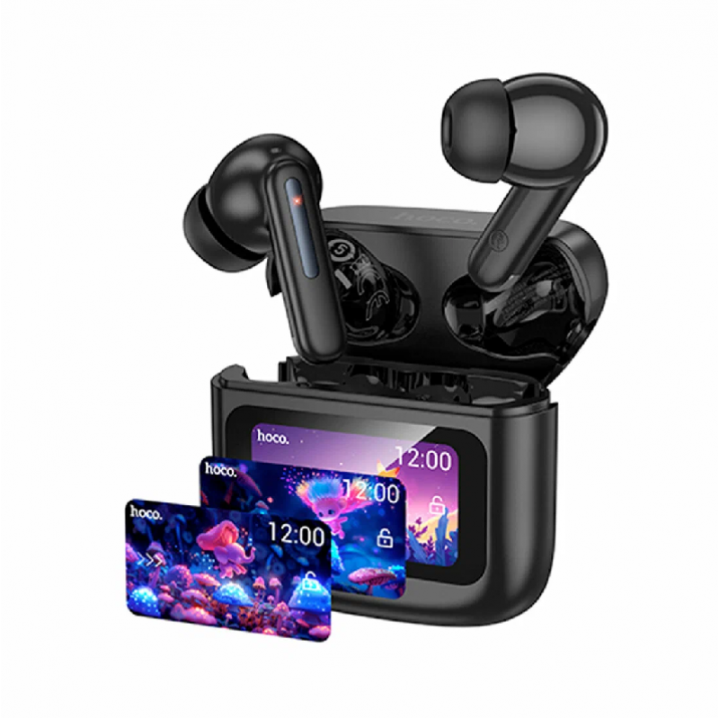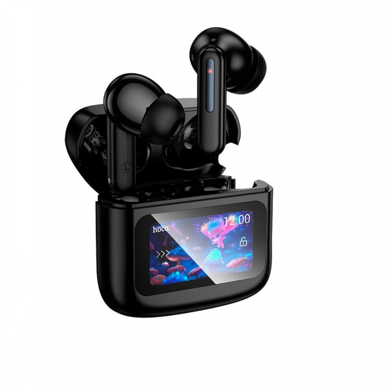 Наушники Bluetooth Headset Hoco EQ14 Cool color TWS with touchscreen Black HOCO EQ14 – это сочетание передовых технологий, стильного дизайна и высокой функциональности. Отличный выбор для повседневного использования и активного образа жизни! Сенсорный LED-дисплей Интеллектуальный дисплей на зарядном кейсе позволяет удобно управлять функциями наушников и получать точную информацию о заряде и текущем времени. Сенсорное управление Позволяет легко переключать треки, регулировать громкость и принимать вызовы одним касанием. Компактность и удобство Эти легкие и стильные наушники удобно брать с собой в дорогу или использовать в течение дня. Высокая автономность Встроенный аккумулятор наушников обеспечивает до 7 часов работы без подзарядки, а зарядный кейс обеспечивает несколько дополнительных циклов зарядки.