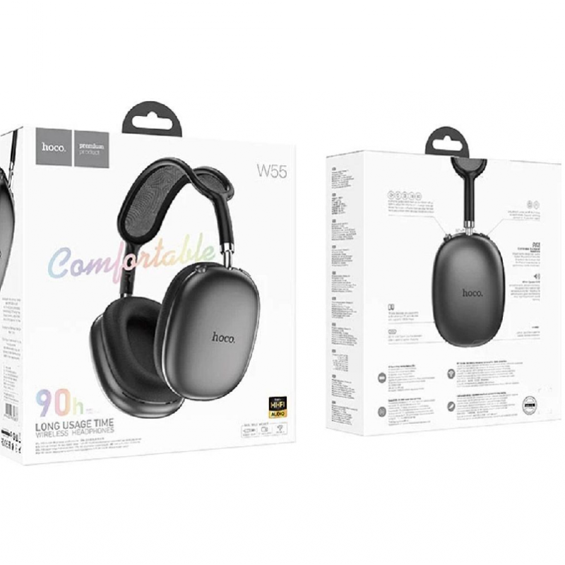 Беспроводные наушники Hoco W55 Pleasing (90 часов работы) - Black Hoco W55 Pleasing – это сочетание поразительной автономности, современного дизайна и кристально чистого звука. Благодаря рекордному времени работы (до 90 часов) и легкой конструкции эти наушники станут вашим идеальным спутником в длительных путешествиях, во время учебы или рабочего дня. Рекордная автономность: забудете о зарядке на неделе Главное преимущество модели – аккумулятор емкостью 800 mAh. Он обеспечивает до 90 часов непрерывного прослушивания музыки. Если вы слушаете музыку по 3-4 часа в день, то заряда хватит почти на месяц! 3 режима использования Наушники адаптируются под любые ваши потребности: Bluetooth 5.4: современный стандарт для стабильной связи без задержек. TF-карта: встроенный слот для MicroSD превращает наушники в полноценный плеер (музыка без смартфона). AUX-режим: подключайте кабель 3.5 мм и продолжайте слушать музыку, даже если разрядился аккумулятор. Комфорт и эргономика Вес наушников – всего 198 граммов. Мягкие амбушюры из экокожи и регулируемое оголовье позволяют носить их часами без ощущения давления. Сложная конструкция делает их компактными для хранения в сумке или на рюкзаке.
