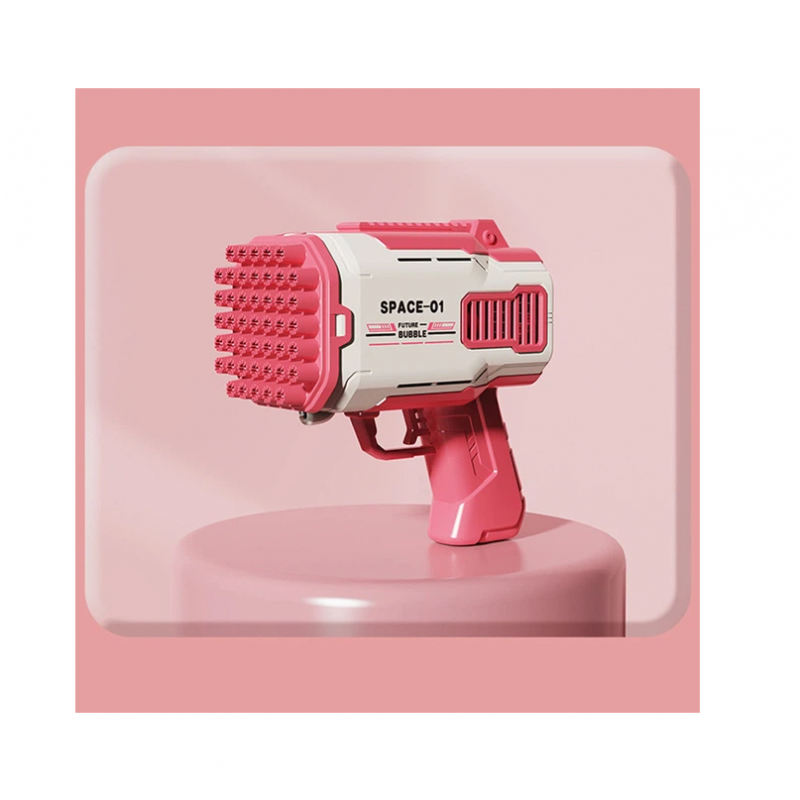 Пистолет для мыльных пузырей Bubble Gun 698-20 с насадками на 32/45 отверстий 50ml Pink