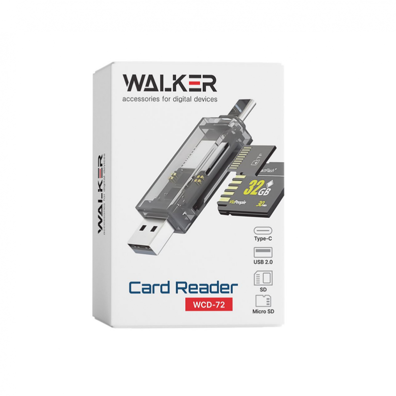 Считыватель карт WALKER WCD-72 microSD/SD (output USB2.0, Type-C) Tranbsperent