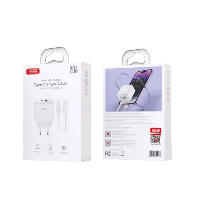 Сетевое зарядное устройство XO L161 20W/1USB-A + 1USB-C White + Cable Type-C