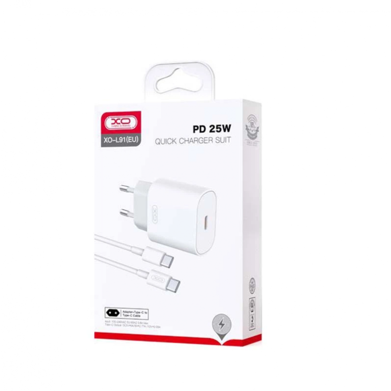Сетевое зарядное устройство XO L91EU PD 25W/1 USB-C White + Type-C to Type-C Cable