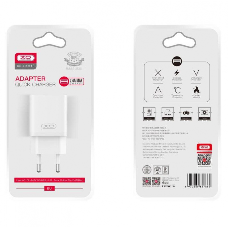 Сетевое зарядное устройство XO L99 2.4A/1USB White