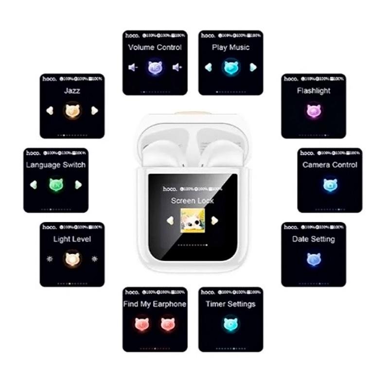Stereo Bluetooth наушники Hoco EW86 Cat — это современный аксессуар, сочетающий оригинальный дизайн и функциональность. Модель оснащена Bluetooth 5.4, обеспечивающим стабильное соединение и качественное звучание при прослушивании музыки или звонках. Особенностью является сенсорный дисплей на кейсе, который позволяет отслеживать уровень заряда и управлять функциями без открытия. Благодаря компактности и лёгкому весу наушники отлично подходят для ежедневного использования. Преимущества: Современный Bluetooth 5.4 для стабильного подключения Сенсорный экран на кейсе для удобного управления Время работы до 3.5 часов (до 20 часов с кейсом) Автоматическое подключение при открытии кейса Встроенный микрофон для звонков Оригинальный дизайн в стиле Cat