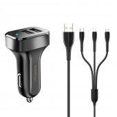 Автомобільний зарядний пристрій Usams C13 2.1A Dual Ports Чорний + USB Cable Lightning (NTU35LC13TZ)