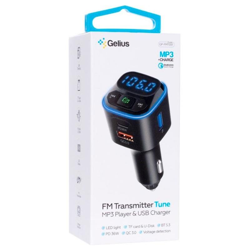 FM Модулятор Gelius Tune GP-FMT051 (PD/QC) 36W Black