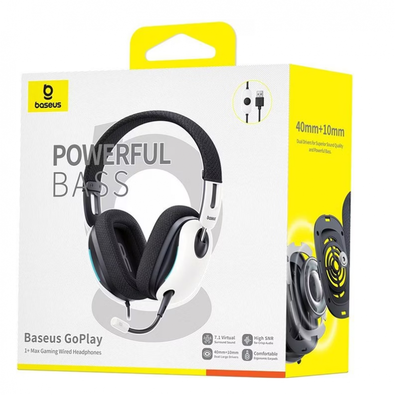 авушники Baseus GoPlay 1 Max Gaming - це дротова ігрова гарнітура, оснащена 40-міліметровими подвійними динаміками та всеспрямованим мікрофоном, що забезпечує якісний звук та комфорт під час тривалих ігрових сесій. ВИСОКОЯКІСНЕ ЗВУЧАННЯ Гарнітура оснащена подвійними 40-міліметровими динаміками, які забезпечують чистий звук із глибокими басами та чіткими високими частотами. Технологія високого співвідношення сигнал/шум (SNR) знижує шум фону, покращуючи чіткість звуку та дозволяючи гравцям точно визначати звукові сигнали у грі. КОМФОРТ ТА ЕРГОНОМІКА Baseus GoPlay 1 Max має оновлені дихають сітчасті амбушюри, приємні для шкіри, які призначені для тривалого носіння та мінімізації втоми вух. Регульоване відслонення з міцною металевою рамою забезпечує зручну посадку для користувачів з різною формою голови. ЗРУЧНЕ УПРАВЛІННЯ ТА СУМІСНІСТЬ Гарнітура оснащена зручними елементами керування, включаючи колесо регулювання гучності, перемикач мікрофона та перемикач увімкнення/вимкнення. Завдяки 3,5-мм аудіоінтерфейсу, вона сумісна з ПК, ігровими консолями та мобільними пристроями. ДОДАТКОВІ ТЕХНОЛОГІЇ Baseus інтегрували інноваційні технології, такі як Audic, BRC та DCLL, для забезпечення просторового звуку та швидкої зарядки. Гарнітура також підтримує низьку затримку аудіо та точне просторове позиціонування, що підтверджено міжнародними сертифікаціями безпеки та якості.