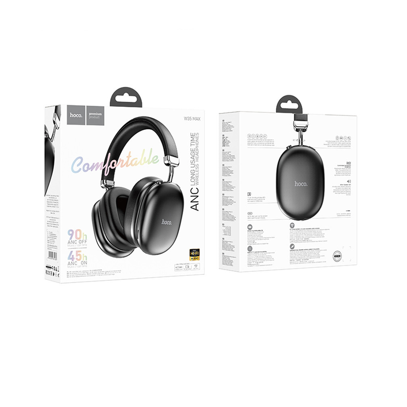 Навушники Bluetooth Headset Hoco W35 ANC Max Auspicious Black Навушники Hoco W35 Max Auspicious ANC Black – це унікальний пристрій, який дозволяє слухати пісні або аудіокниги з комфортним рівнем звуку і при цьому не докучати іншим людям. Де б ви не були: в парку на пробіжці, в маршрутному транспорті або в робочому кабінеті, міністереосистема допоможе цікаво провести час і не нудьгувати за рутинними заняттями. Навушники Hoco W35 Max Auspicious ANC Black з мікрофоном наділені якісним звучанням без супутніх спотворень, тому стануть оптимальним інструментом для всіх, для дівчат. За видом акустичного оформлення це закриті навушники. Особливості підключення навушників Підключення пристрої комбіноване за допомогою інтерфейсу Bluetooth, 1 x mini-jack (роз'єм 3.5 мм), MicroSD. Це гарантує потрібну для комфортного руху свободу дій і абсолютно підходить для ПК, для ноутбука, для телефону. При цьому підключення сумісно з усіма популярними смартфонами/планшетами або ПК. Дизайн і нюанси конструкції навушників Hoco W35 Max Auspicious ANC Black Навушники накладні великі з картою пам'яті, з активним шумозаглушенням, що гарантує комфортне використання і хорошу ізоляцію зовнішніх шумів. Модель без кріплення, приймайте це до уваги, якщо плануєте багато рухатися під час експлуатації. чорний колір моделі відмінно поєднується з різними стилями одягу. Для випуску амбушур використовували практичний і приємний на дотик матеріал Шкірзам.