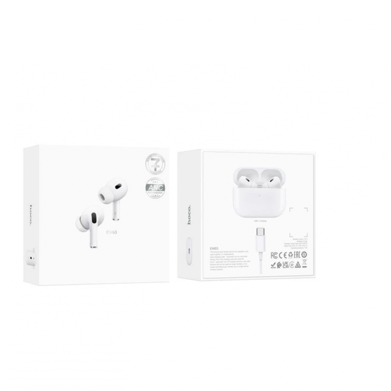 Hoco EW63 — це сучасна TWS-гарнітура, що поєднує в собі преміальний дизайн, кришталево чистий звук та передову технологію активного шумозаглушення (ANC). Ці навушники створені для тих, хто хоче насолоджуватися музикою без сторонніх звуків вулиці чи офісу. Ключові переваги: Активне шумозаглушення (ANC): Ефективно відсікає зовнішні шуми, дозволяючи повністю зануритися в аудіоконтент або зосередитися на розмові. Новітній Bluetooth 5.3: Забезпечує стабільне з'єднання без затримок, швидке підключення та економне споживання енергії. Чистий стереозвук: Глибокі баси та чіткі високі частоти завдяки якісним динамікам, що ідеально підходять для будь-якого жанру музики. Сенсорне керування: Керуйте відтворенням, перемикайте треки та відповідайте на дзвінки легким дотиком до корпусу навушника. Автономність: До 7 годин безперервної роботи на одному заряді (залежно від режиму) та додаткові цикли зарядки від кейса.