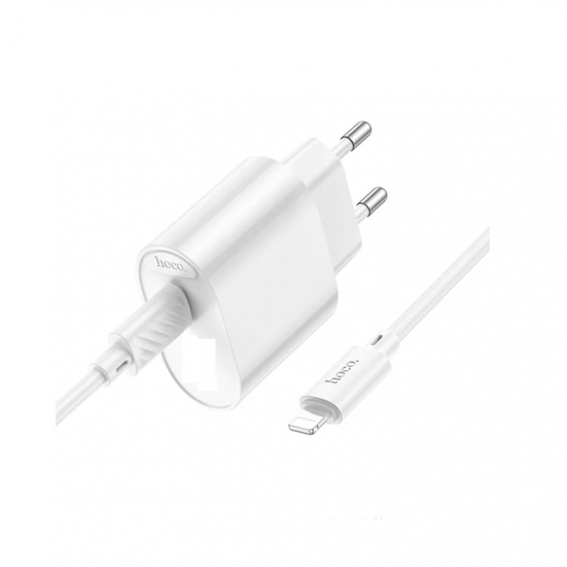 Мережевий зарядний пристрій 1 Type-C Hoco C109A Fighter RD 20W White + Cable Type-C to Lightning