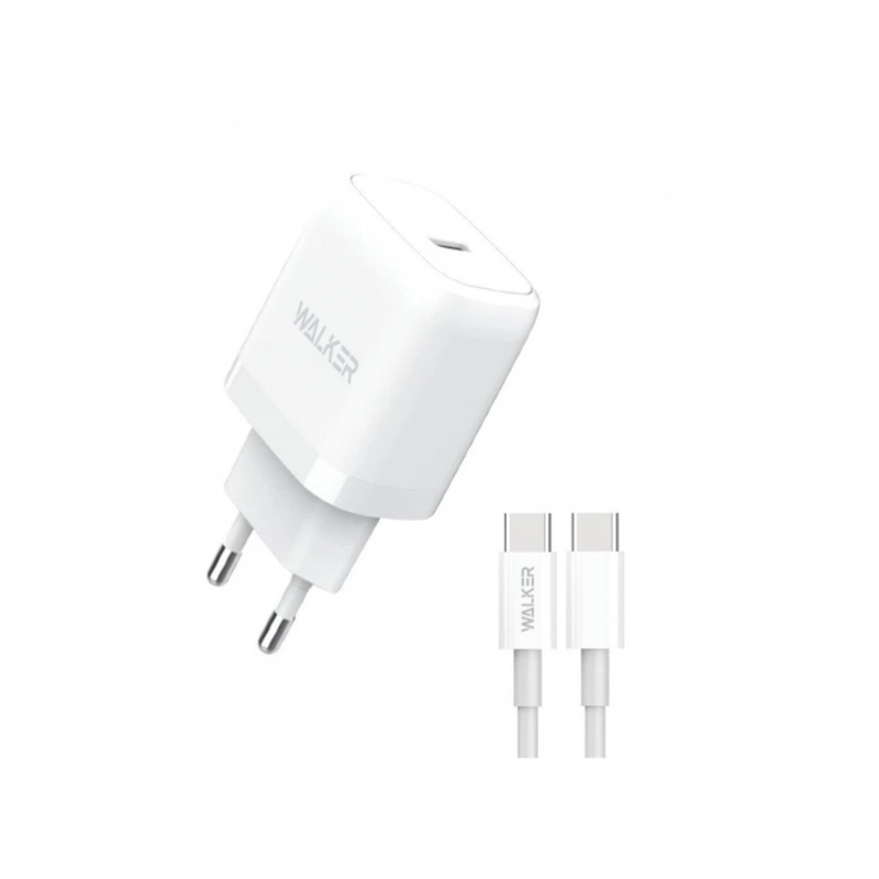 Мережевий зарядний пристрій 1Type-C WALKER WH-63 PD20W White + Type-C to Type-C White