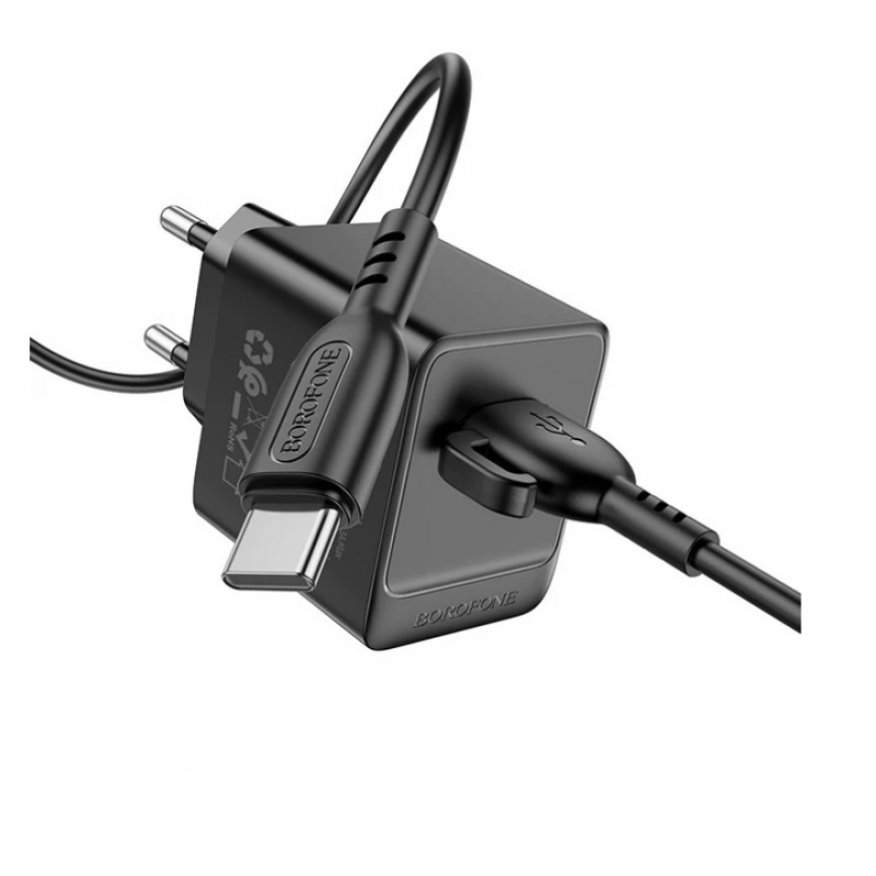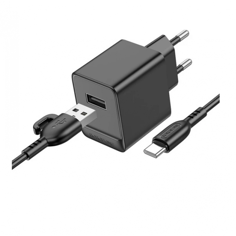 Мережевий зарядний пристрій 1USB Borofone BAS11A Erudite 2.1A Black + Type-C Cable