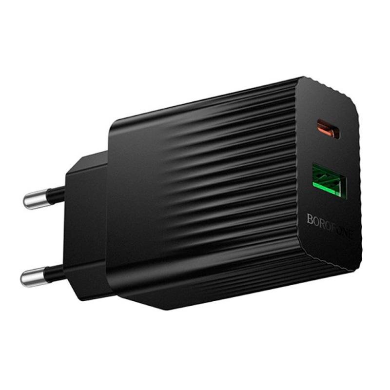 Мережевий зарядний пристрій 1USB + Type-C Borofone BAS74A PD20W+QC3.0 Black
