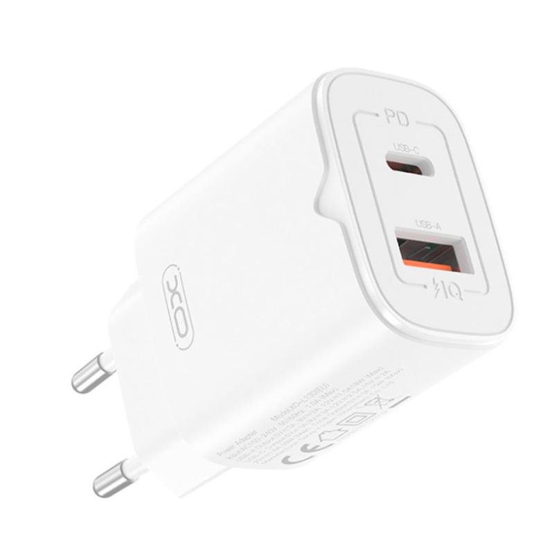 Мережевий зарядний пристрій XO L130 PD/QC 3.0 GaN 30W/1USB + 1USB-C White
