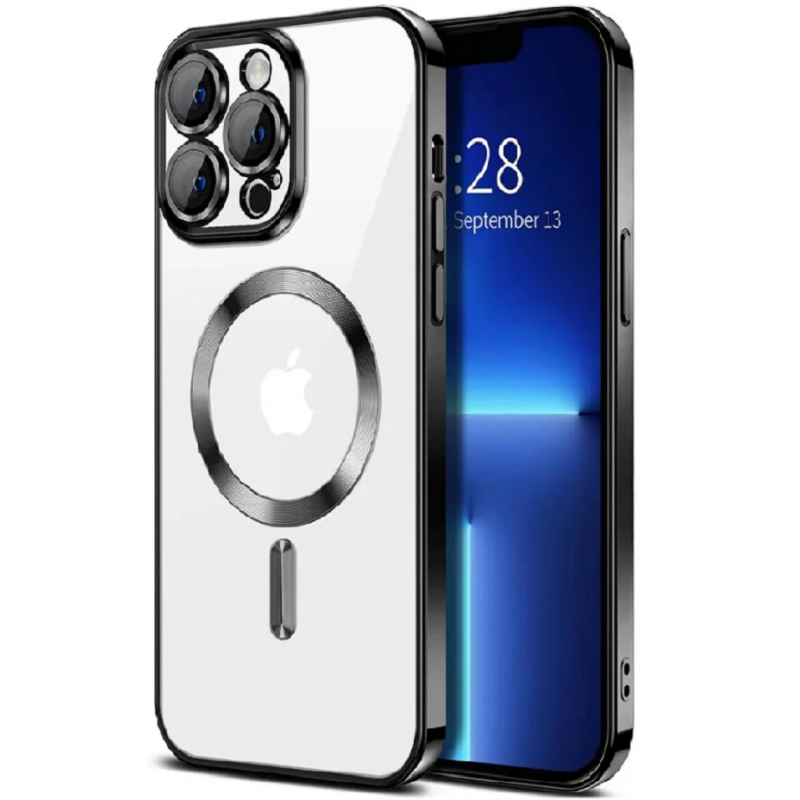 Силіконовий чохол SHINING with MagSafe для iPhone 16 Pro Max Чорний Чохол, який поєднує у собі зручність, стиль та захист. Задня кришка виготовлена з прозорого силікону, що не приховає колір Вашого смартфону, а яскраві силіконові бортики закривають нижню частину, залишаючи вирізи для необхідних портів. Чохол має вбудоване захисне скло для камери. Однією з переваг цієї моделі є підтримка бездротової зарядки.