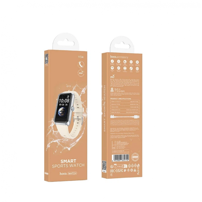 HOCO Y34 — стильний розумний спортивний годинник у витонченому сріблястому кольорі із функцією дзвінків, моніторингом здоров’я та яскравим 1.47-дюймовим TFT-дисплеєм. Модель поєднує сучасний дизайн і функціональність, а завдяки Bluetooth 5.3 дозволяє приймати дзвінки прямо з зап’ястя без необхідності діставати смартфон. Годинник має захист IP67 від пилу й бризок води, що робить його надійним у щоденному використанні. Потужний процесор JL7014 і 64 МБ пам’яті забезпечують швидку роботу інтерфейсу, а акумулятор на 180 мА·год дозволяє працювати до 5 днів без підзарядки. Дисплей із роздільною здатністю 172×320 відображає інформацію чітко та яскраво навіть під прямими променями сонця. HOCO Y34 підтримує всі необхідні функції: дзвінки, моніторинг серцебиття, активності, спортивні режими, прогноз погоди, нагадування, жіноче здоров’я та пошук телефону. Інтерфейс має підтримку 21 мови, включно з українською. Переваги Преміальний колір корпусу — універсальний стиль для чоловіків і жінок. Підтримка дзвінків напряму з годинника. Яскравий 1.47” TFT-дисплей із роздільною здатністю 172×320. Захист IP67 — не боїться пилу й бризок. Моніторинг серцебиття, активності, спортивні функції. Bluetooth 5.3 — стабільне підключення до смартфона. До 5 днів автономної роботи. 21 мова інтерфейсу, включно з українською.