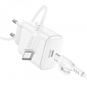 Мережевий зарядний пристрій 1Type-C Borofone BA81A PD20W White + Type-C to Type-C