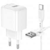 Мережевий Зарядний Пристрій XO L148 30W/USB-C White + Type-C Cable