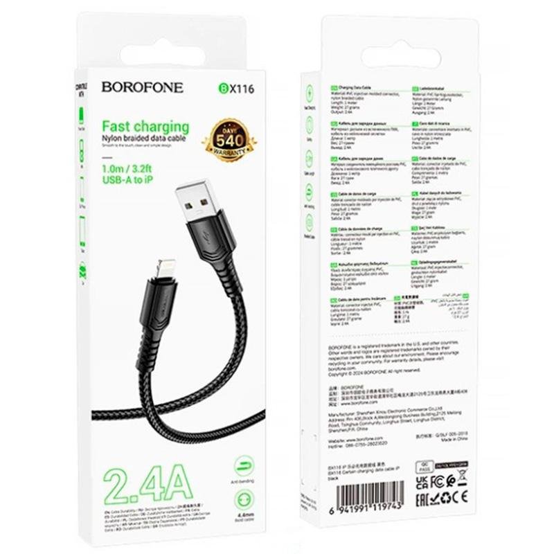 USB Кабель Borofone BX116 Certain Lightning Black 1m